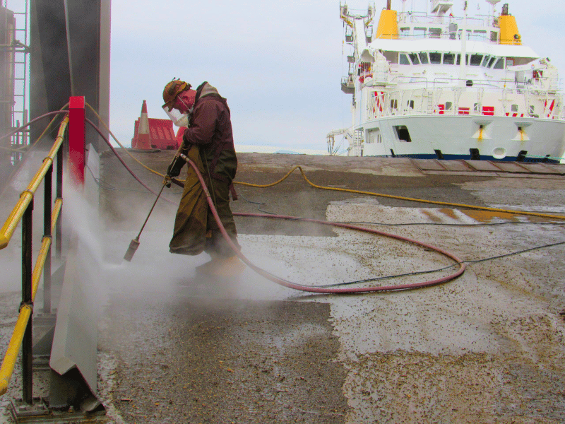 Abrasive blasting, commonly referred to as shot-blasting, involves propelling a stream of abrasive material at high pressure to smooth and prepare surfaces. This highly effective system is ideal for the rapid removal of rust, paint, old coatings, scale, graffiti, and other contaminants from a wide range of surfaces, including steel, aluminium, concrete, stone, and timber. It is particularly suited to marine structures, fuel tanks, steel bridges, ramps, and similar steel constructions.