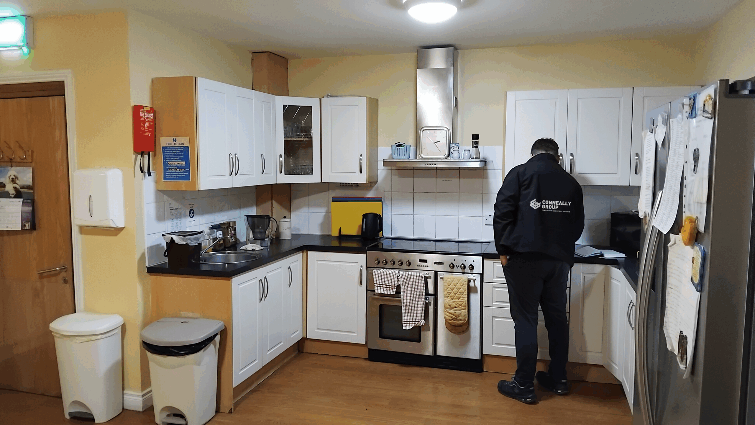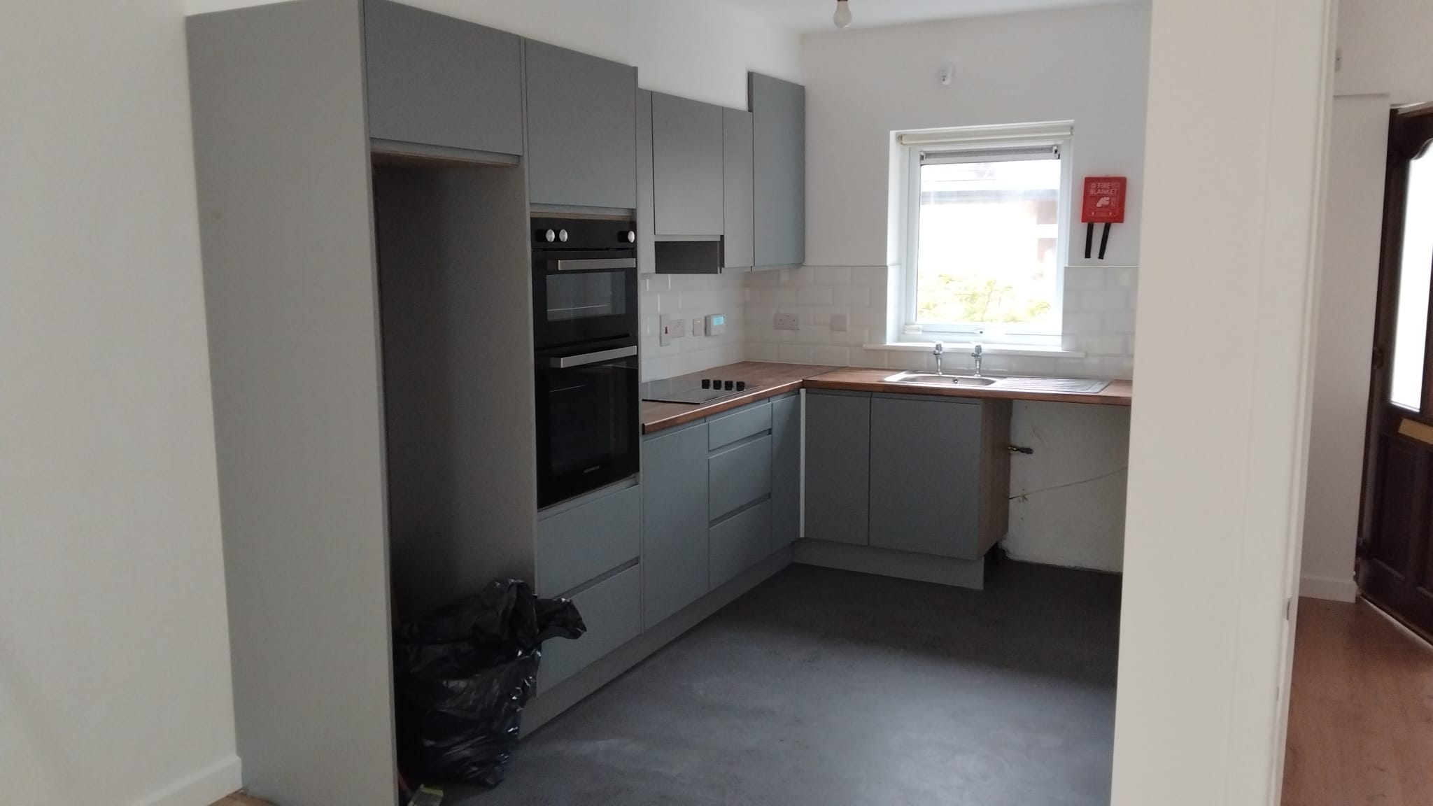 Project Description: Upgrade works were carried out in line with occupational therapist specifications, including the refurbishment of existing kitchens and bathrooms, installation of Doc M Pack compliant toilet and shower facilities, hygienic PVC Whiterock wall cladding, slip-resistant Altro flooring, new kitchen units, suspended ceiling systems, extraction fans, and accessible ramp and handrail installations—ensuring the homes are safe, functional, and inclusive for all residents.