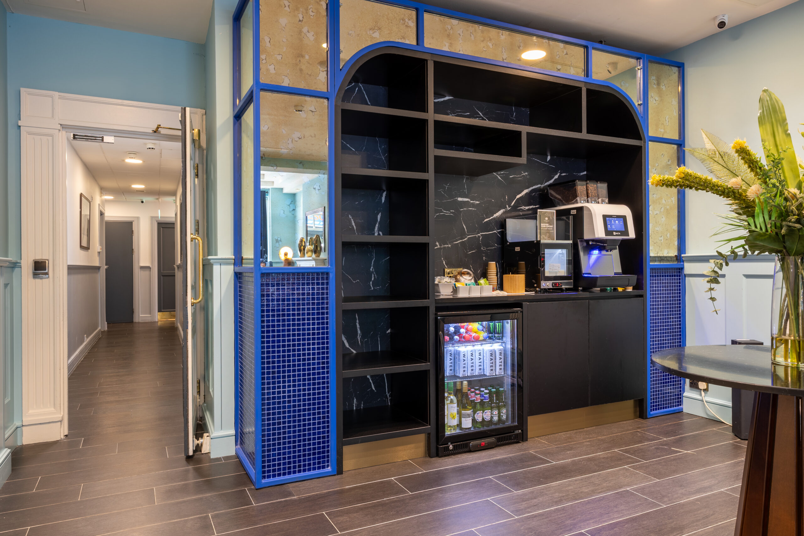 The scope included the full strip-out and high-specification fit-out of the main hotel lobby, Buskers Cocktail Bar, and three toilet blocks across both ground and basement levels. Precision planning and execution were central to the project, enabling us to deliver premium finishes that enhanced the overall guest experience.